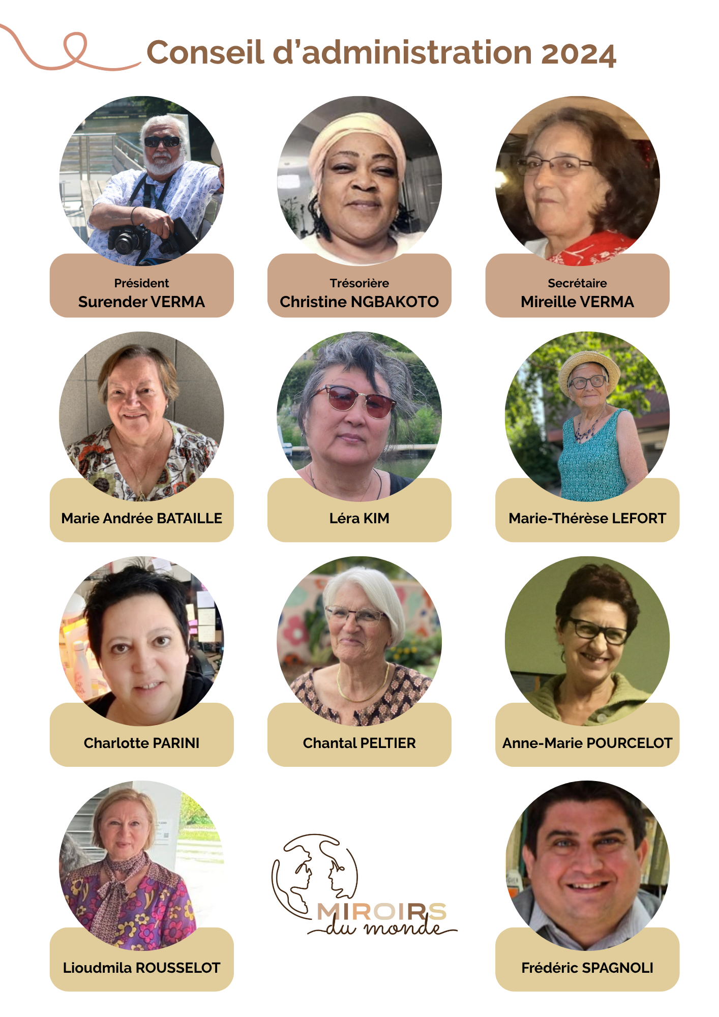 Notre association a été créée en 2013 sous le nom de « Miroirs de Femmes-Reflets du Monde », par un groupe de femmes et d’hommes d’âges et d’origines diverses qui se sont donnés comme objectif la promotion du vivre ensemble, des valeurs de dignité, de partage et de respect de l’autre.